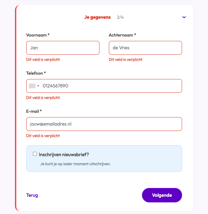 Duidelijkheid is key. Ticketkopers moeten snappen wat er van ze verwacht wordt, en direct zien wat nog ontbreekt. Daarom helpen we bezoekers actief tijdens de checkout met: