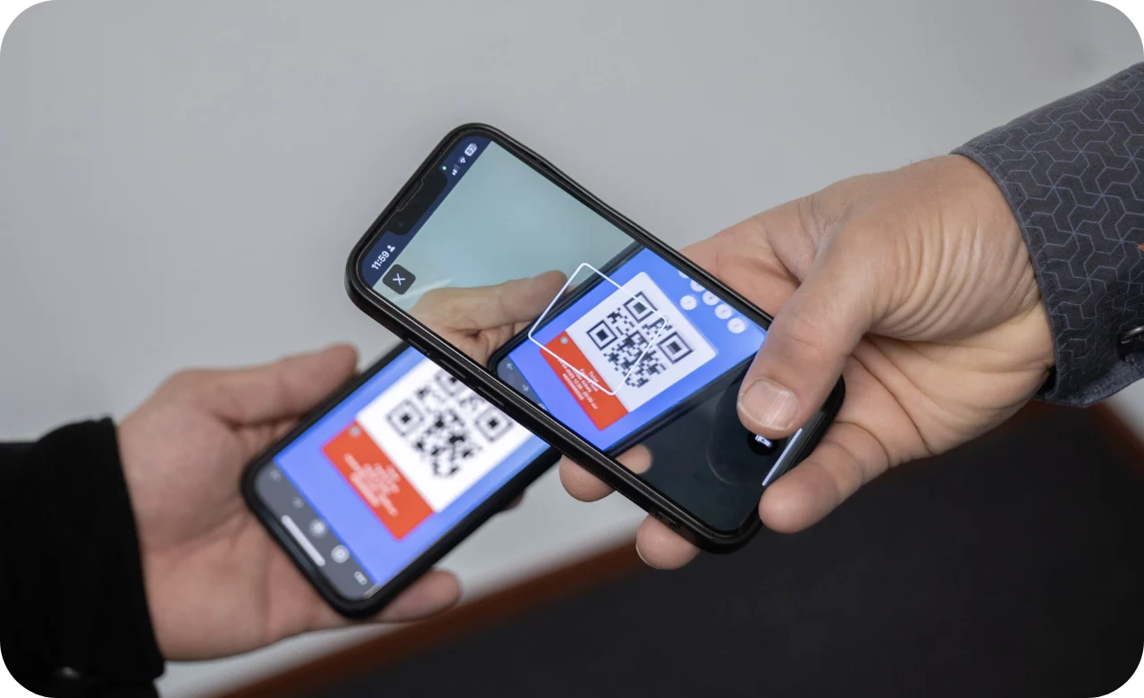 Crew scant de QR-code met de Avayo Scanner-app of pro-scanners.